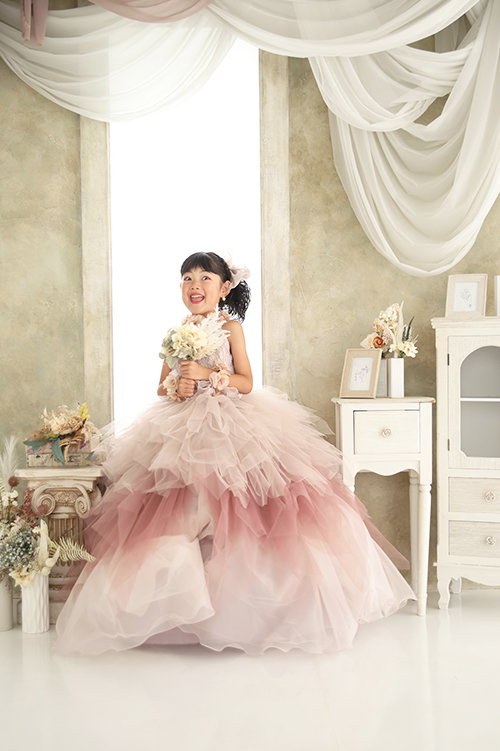 最後の衣装はスモーキーピンクのふわふわドレス🌷